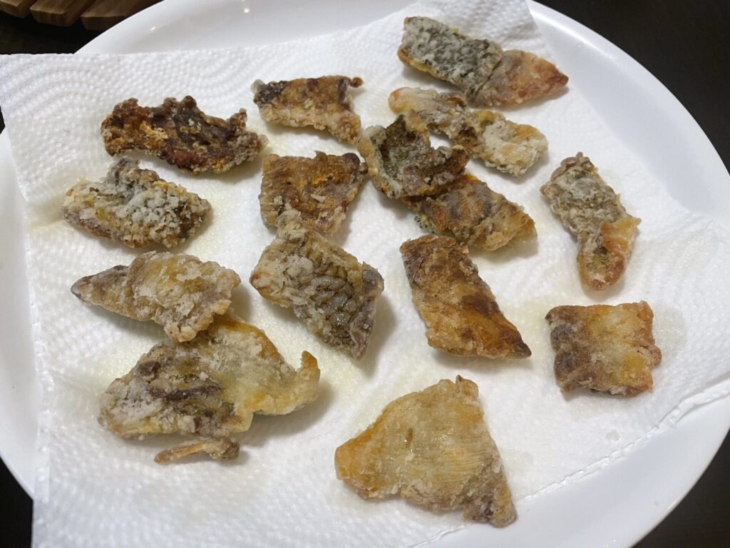 式根島では内臓とエラをとり、鱗をつけたまま水分をしっかりとって、グリーンパーチで巻き、その上からラップで密封。毎日、グリーンパーチを取り替えながら丁寧に熟成したフエダイ開封の儀が行われました。