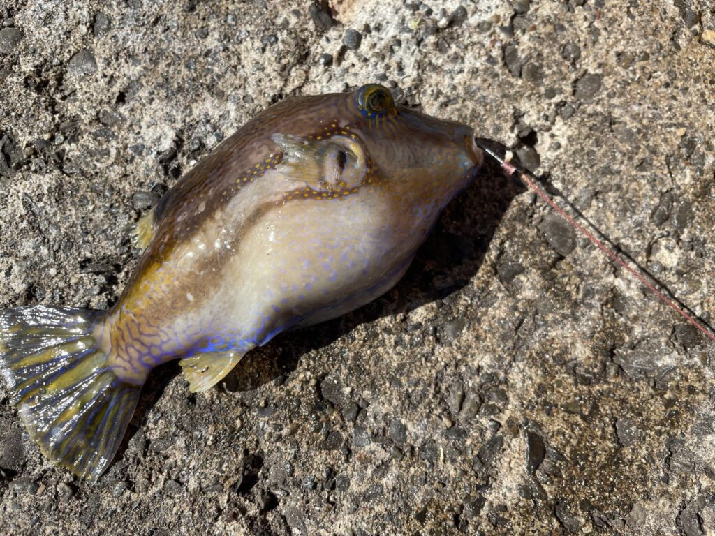 情報をGETしながら挑むも、昼間はイスズミ、イシガキフグ、キタマクラの外道セットで終了。