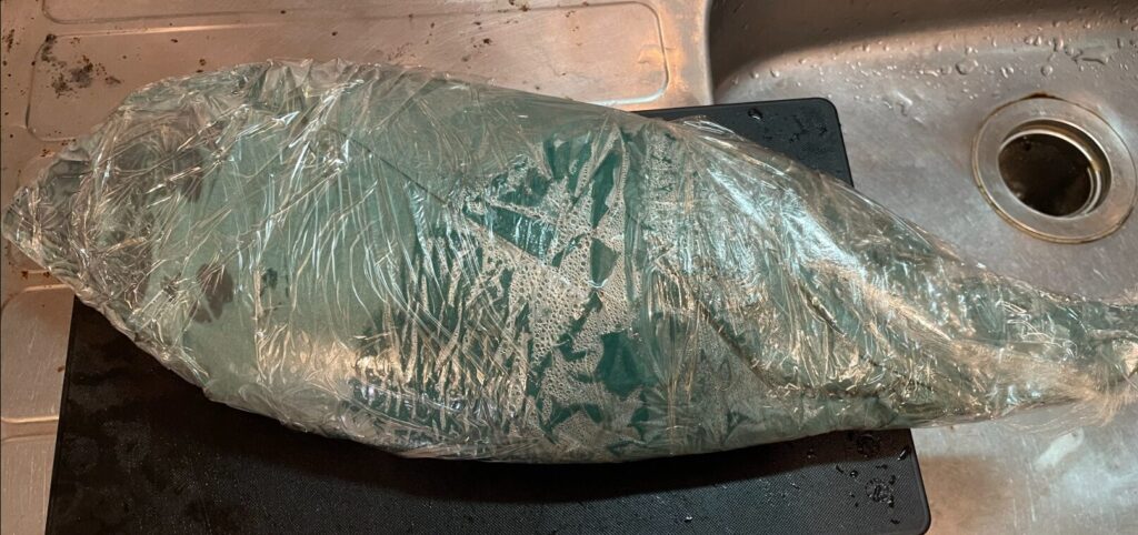 そして、とうとう上がってきたのは54cm!!これはここのところ上がっていたサイズを10cm以上UPの良型です。お腹もパンパン!内臓処理後、しばらく保存してから計った重量が2.7㎏なので、実際は3㎏以上あったのではないでしょうか。