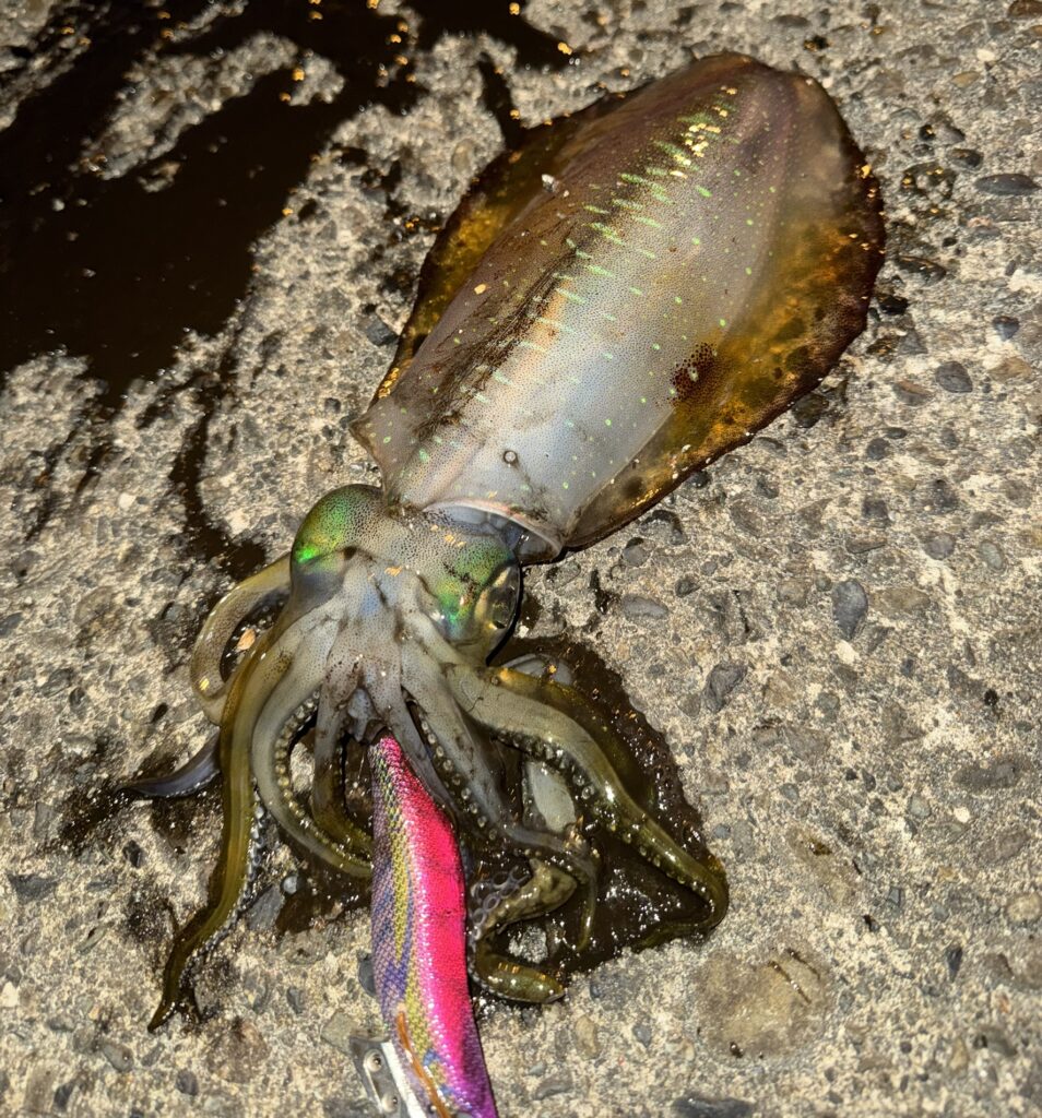 アオリイカといえば寿司や割烹、料亭で珍重される最高級のイカですが、式根島では身近に釣れるイカです。