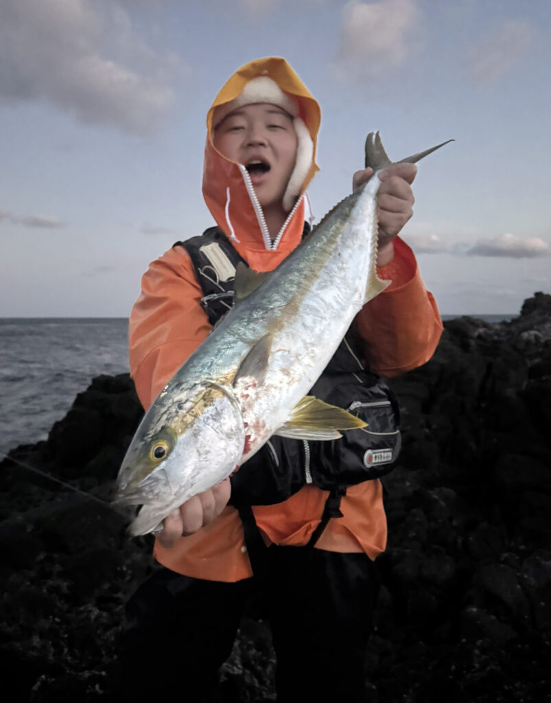ヒラマサは船でしか釣ったことがなかったので、初めて地磯で釣ることができて嬉しいです!式根に来ても船に乗れない日は釣りに行かない日々でしたが、これからは地磯にも通おうとおもいます!