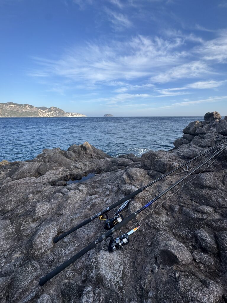 大学生バイトのヒデ君がプライベートで幼馴染を連れて来島です。常連となった国立大の大学生も一緒に、またまた磯釣りです。釣り師たるもの式根の磯に挑まずにおられるか!の精神で、最近積極的に磯に足を運ぶヒデ君です。