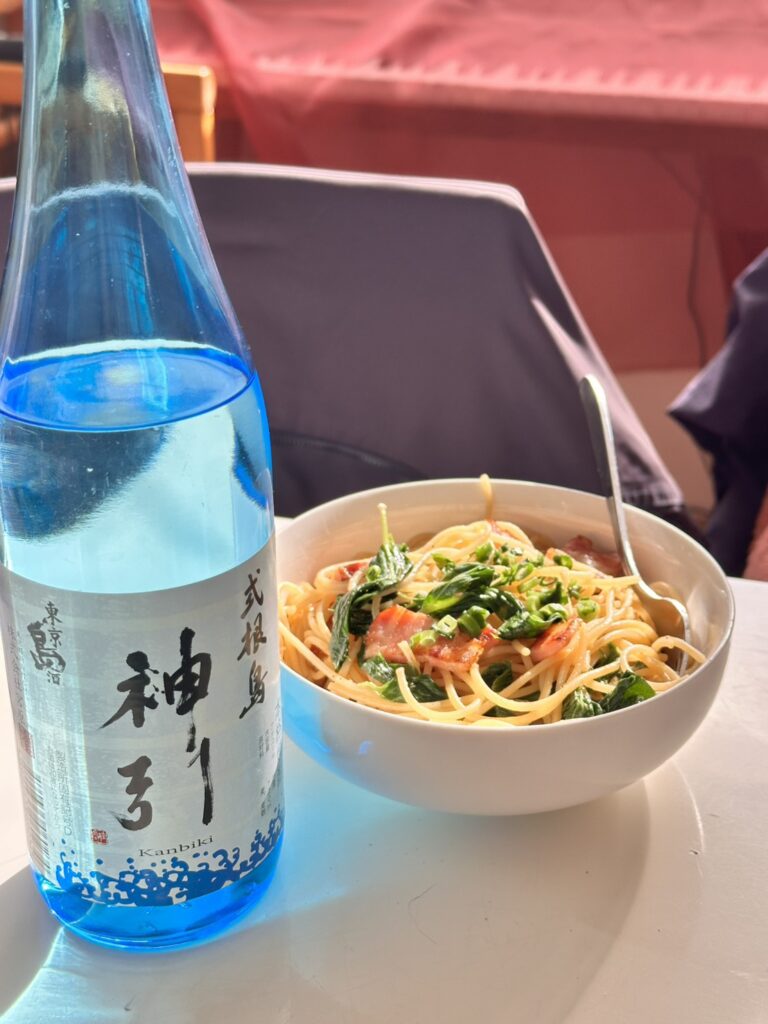 帰宅後は、式根島の明日葉でパスタを作って、式根島の思い出話をしながら、釣り好きのお父さんなどご家族と召し上がったそうです。