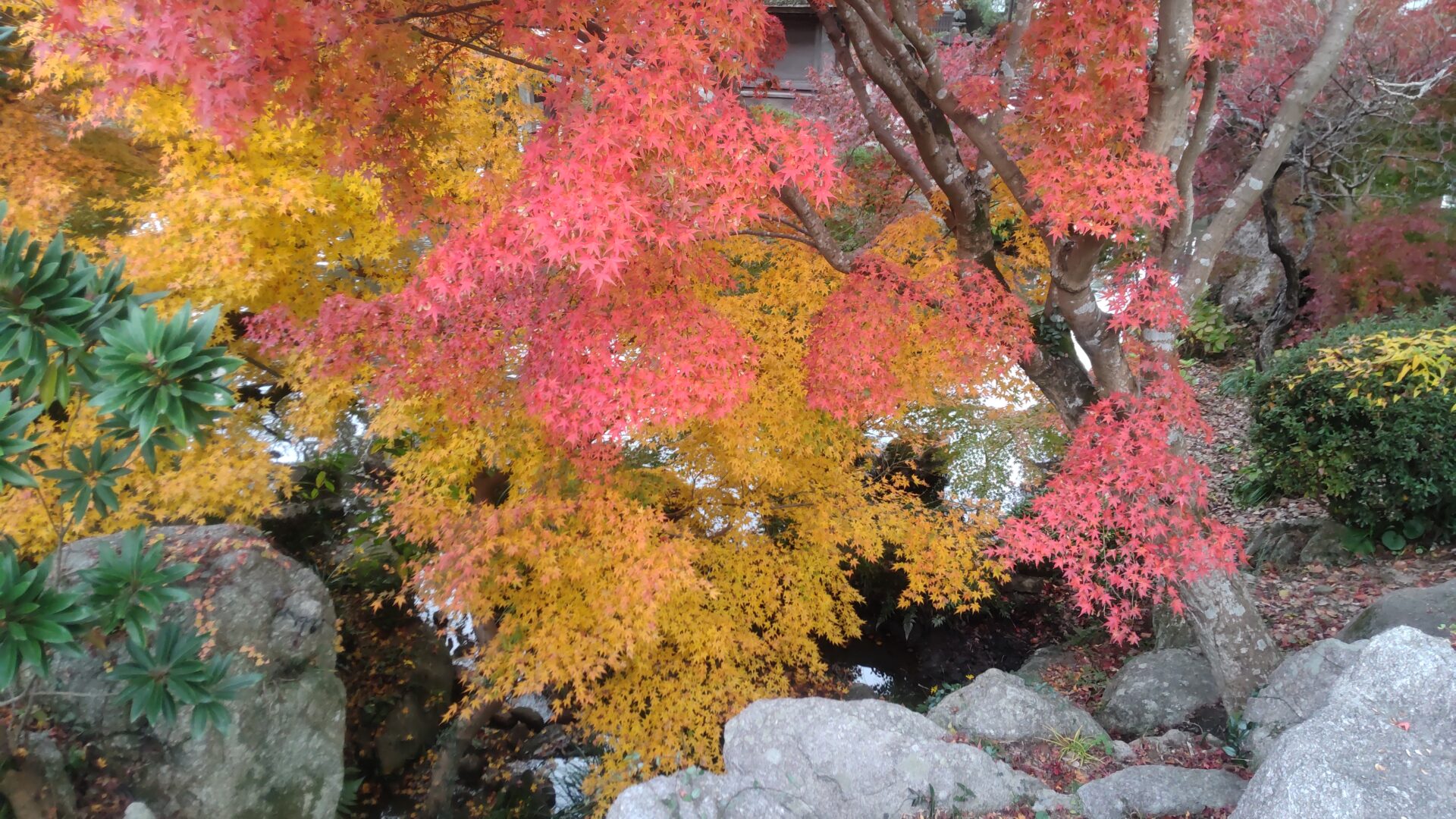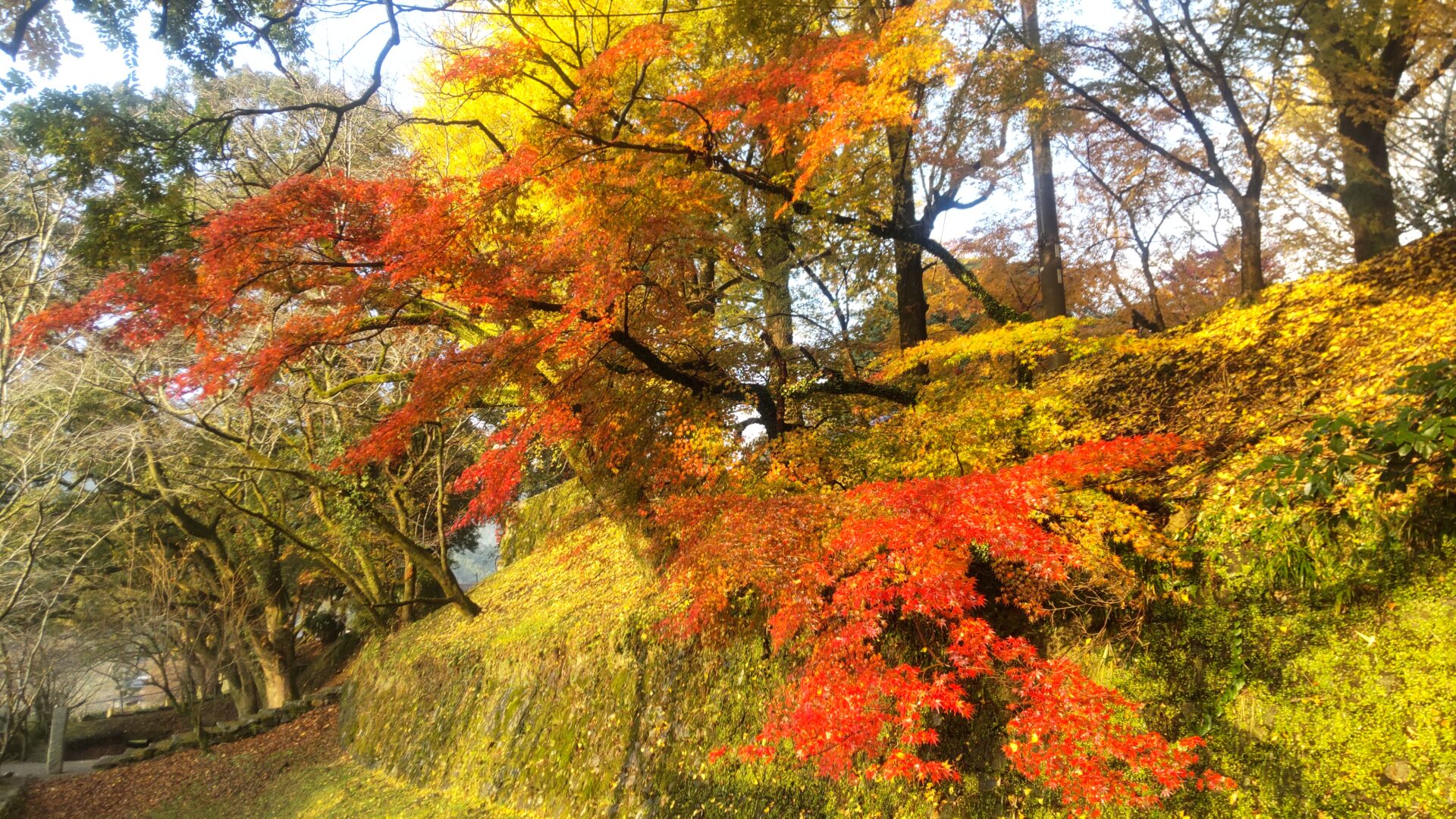 今回、九州各地で紅葉を見てきましたが、最後のこの紅が一番鮮やかでした。