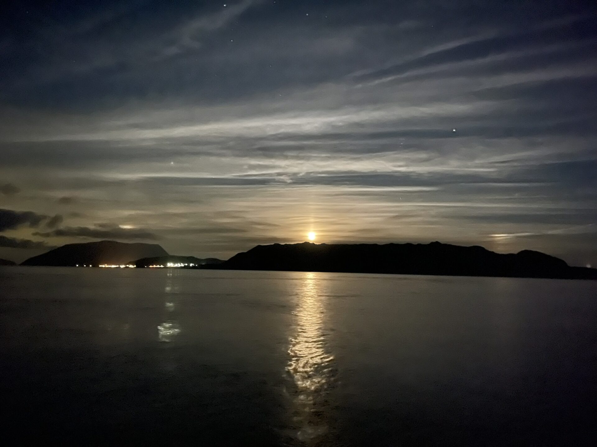 - 昇るごとに周囲を照らす月明かりの輝きに驚く