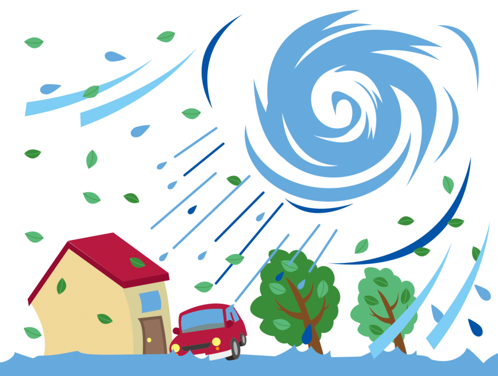 強風により、樹木が倒れたり、枝が折れたり、建物の屋根の一部やトタンなどの建材が吹き飛び、窓ガラスが割れる危険があります。飛来物は凶器となるため、大変危険です。 - 屋外活動の禁止