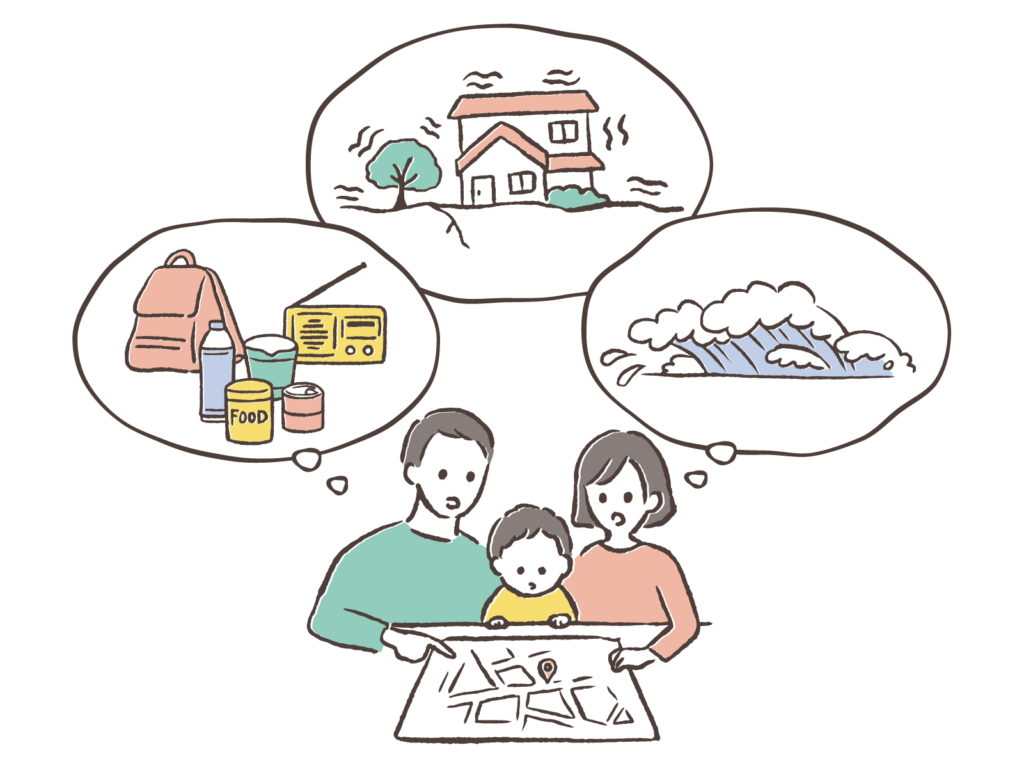 強い揺れ(震度4以上が目安)や、弱くても長く続く揺れを感じた場合、また、緊急地震速報を受信した場合は、津波警報を待たずに直ちに避難行動を開始してください。