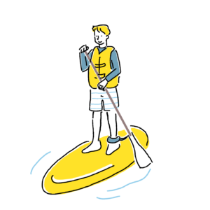 直ちにパドルで全力で岸に向かって戻ってください。 自治体の防災無線やサイレン、スマートフォンの緊急速報、あるいは海上に設置される津波フラッグなどの情報を確認し、迷わず行動します。サーフボードやカヤックは重要な浮力体になりますので、なるべく離さないようにしてください。 - 周囲への声かけ