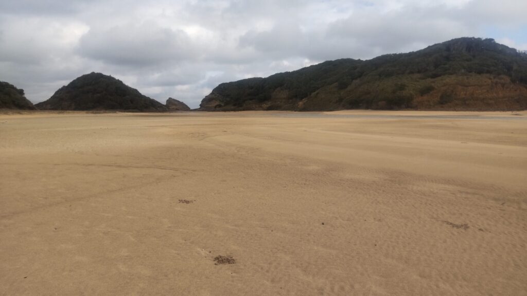 (干潮時は)砂浜が一面に広がる。