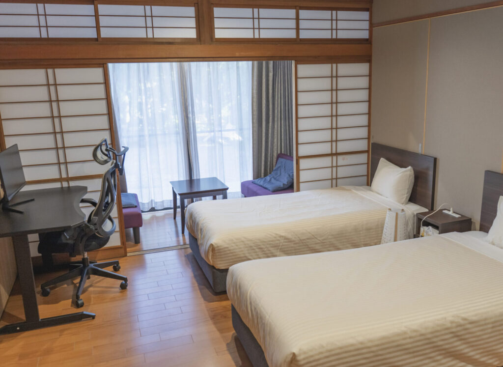 世の中にはうらやましいことに、定期的にワーケーションができる環境の方がいます。式根島はインターネット環境がよく、ワーケーションをしやすい客室や設備が整っているので、ワーケーション目的の一人旅の方にも人気です。