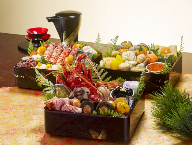 海老の王様こと伊勢海老は、 立派な長い髭(ひげ)と、腰の曲がった姿が長寿を連想させ、飛び出した目が「目出たい」縁起物として、我が国ではおせち料理や祝いの宴に重用されてきました。市場の相場は時期にもよりますが、500gなら1匹1万円~の高級食材です。