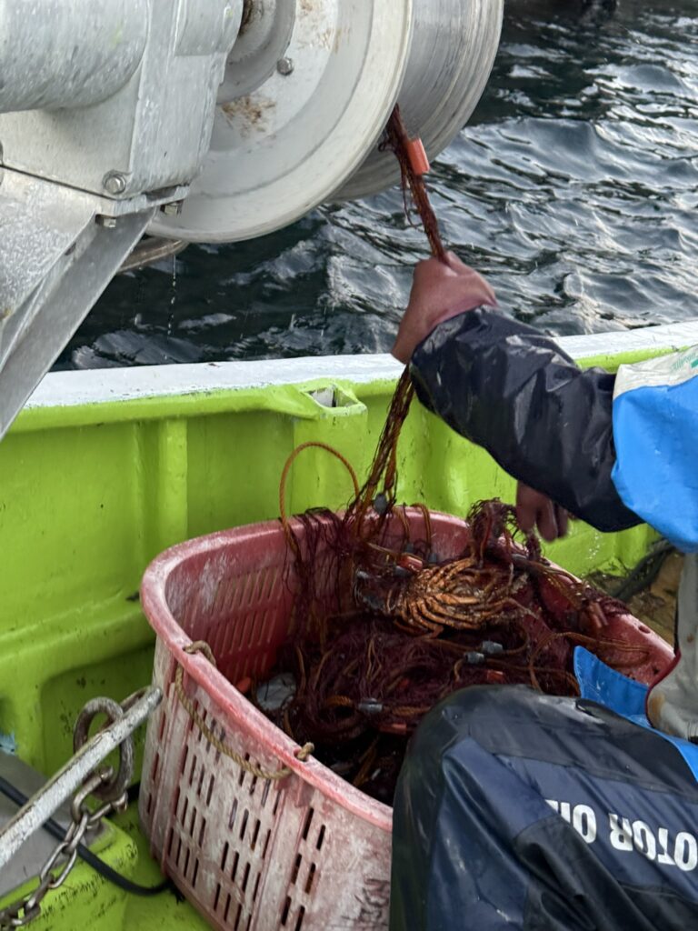 やがて、1匹目の伊勢海老が現れ、2匹、3匹と続きました。ホッとした空気が漂いますが、大事な商品である伊勢海老に傷をつけないよう、緊張の作業が続きます。