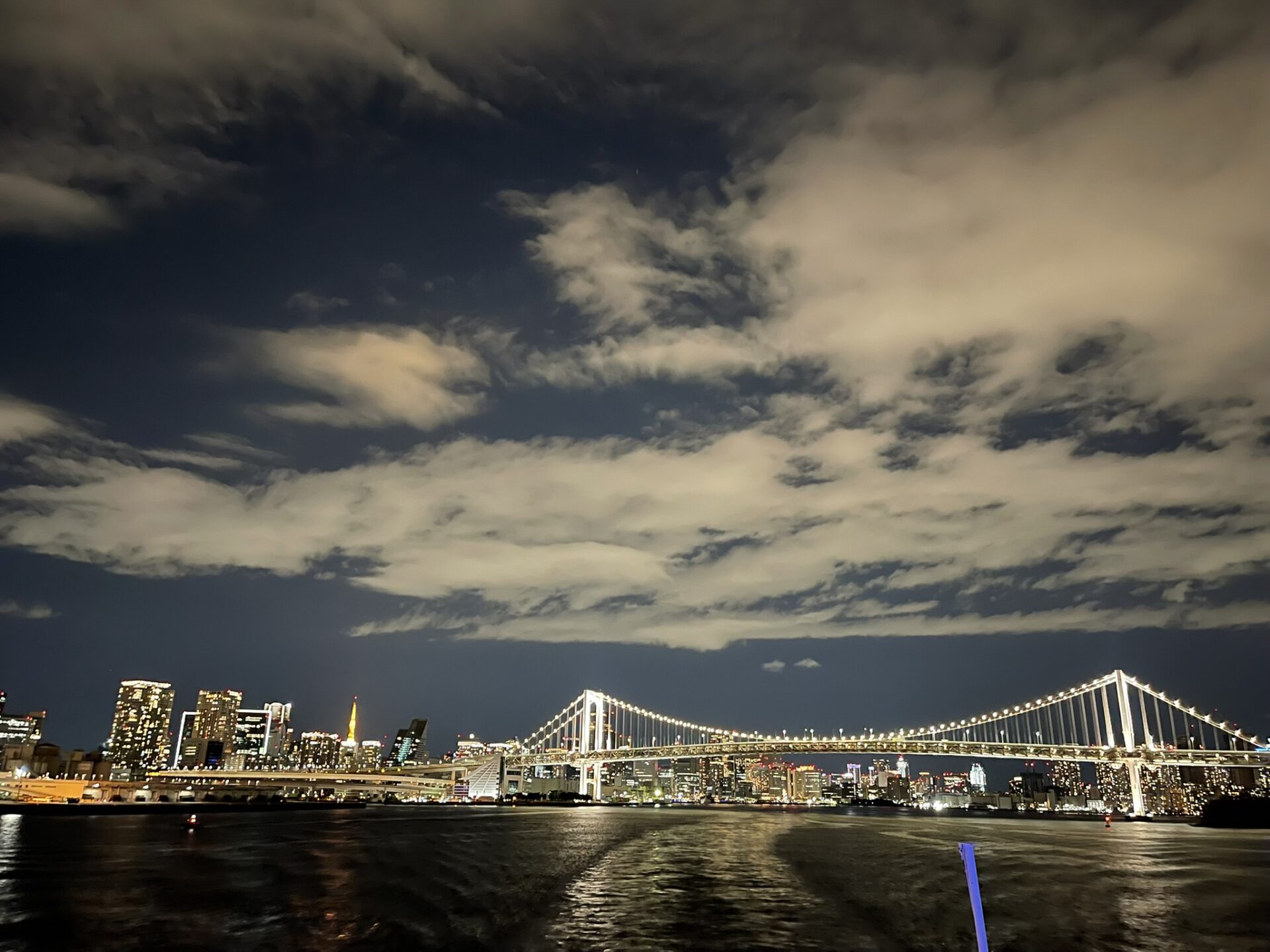 深夜22時にさるびあ丸で竹芝を出航し、網膜に焼き付く東京湾岸の夜景に胸踊らせ、