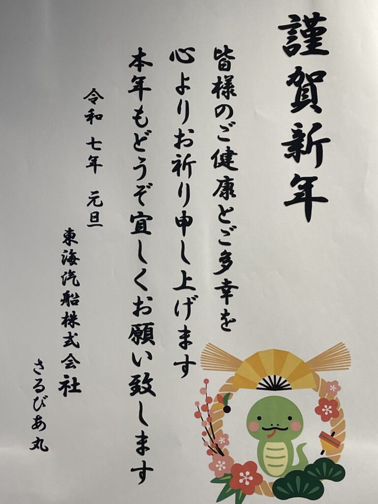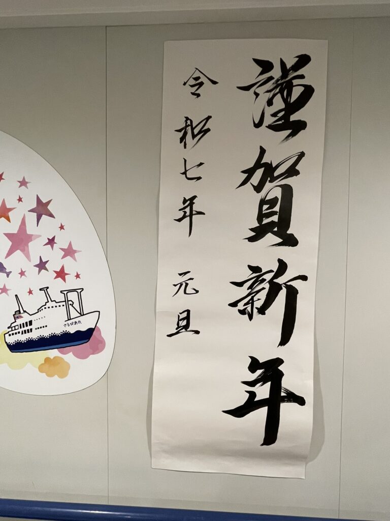 三が日が終わるころの大型客船さるびあ丸は、大勢の島民に見送られて島を離れます。船内は随所が「謹賀新年」モード。特別な体験尽くしの年末年始となります。