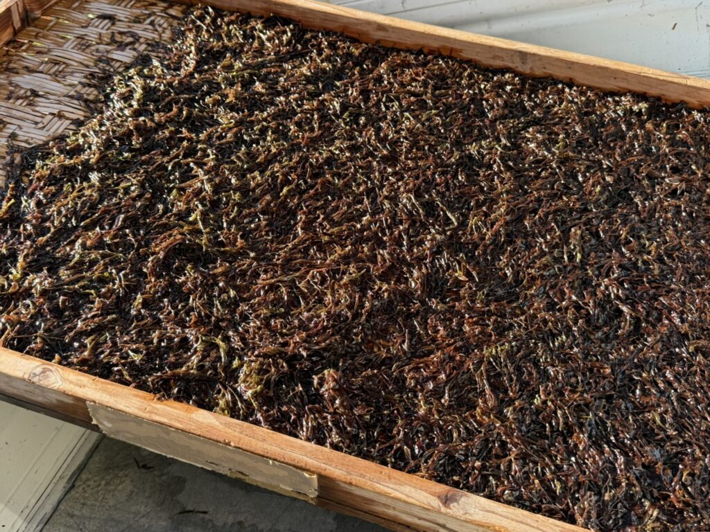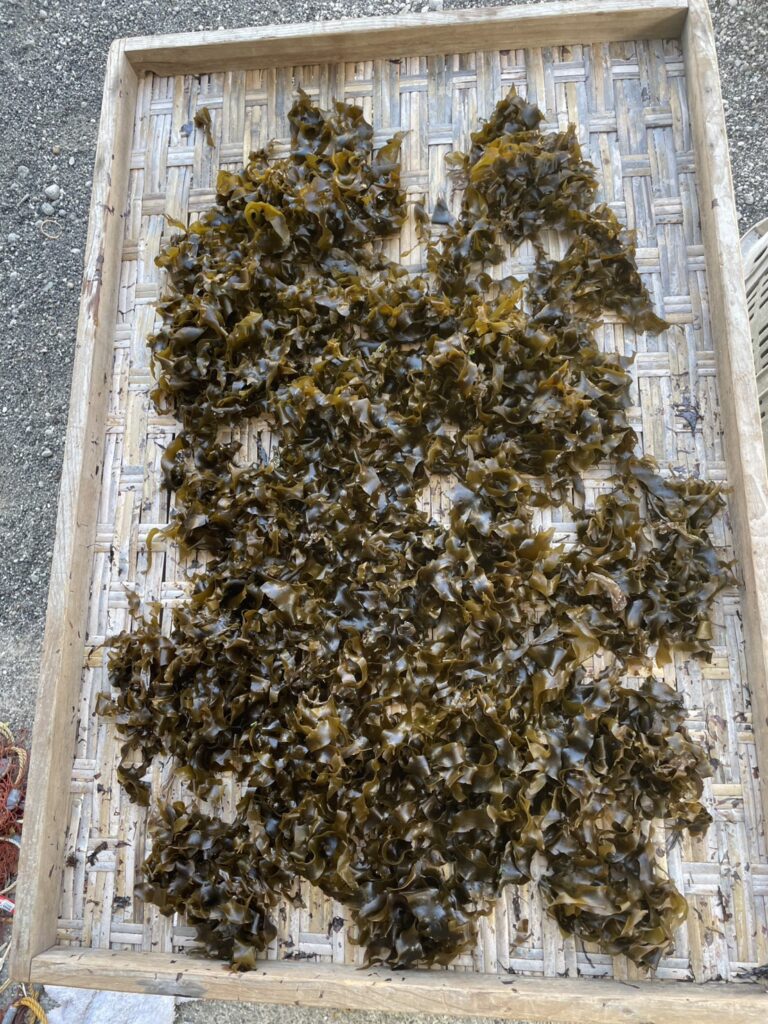 こちらは、別の種類の海苔で「ハバノリ」と「アオサノリ」です。ハバノリを炊き込んだ「はんば飯」は島民の大ごちそうです。アオサノリは香りが良いので、岩海苔を干すときに適度に混ぜ込むなど、こだわる島民もいます。しかし、アオサノリは岩や砂利を噛みやすく、これをきれいに下処理するのは苦労です。