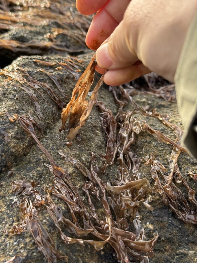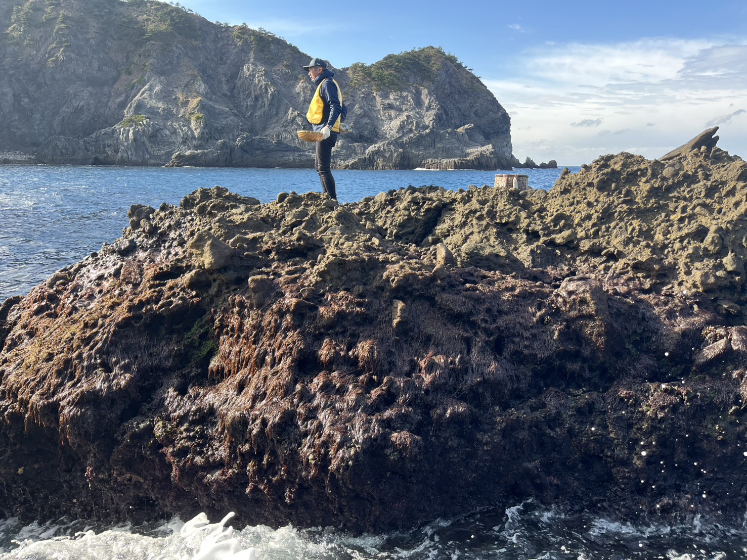 式根島で食べられる種の特定は難しいのですが、2021年に「ハイタンアマノリ」、2025年に「クロシオアマノリ」が見つかるなど、多様性に恵まれた藻場であることは間違いありません。これらは温暖化に対応した新しい海苔養殖の育種品種として、交雑種も含め、調査研究と検討が続けられています。