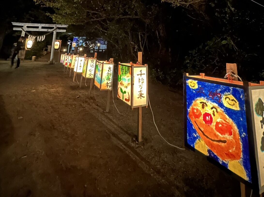 境内は子どもクラブや関係者が手作りした個性あふれる行灯やお祭り提灯(御神燈)が照らし、式根島の祭りの夜を情緒豊かに彩ります。
