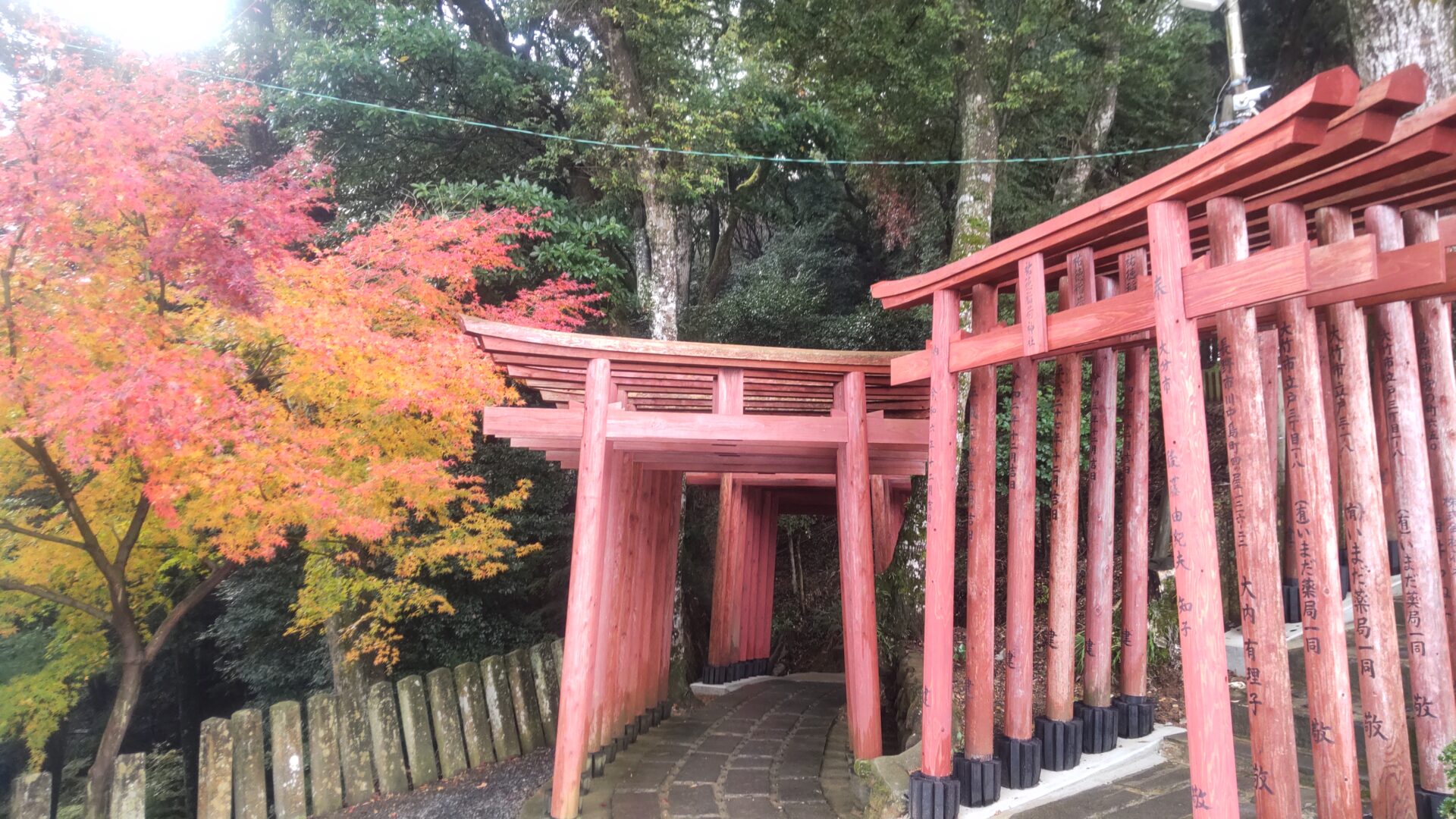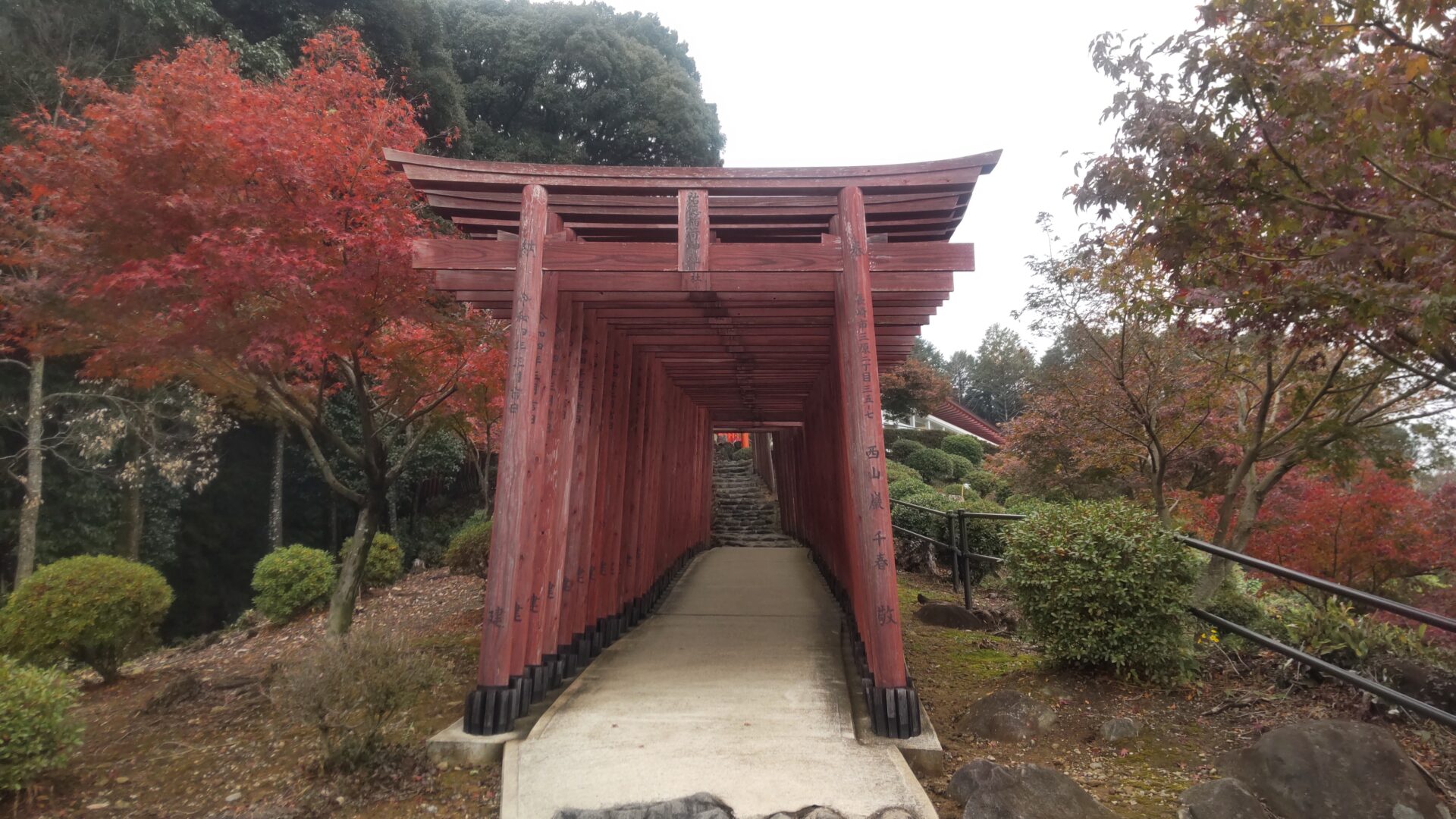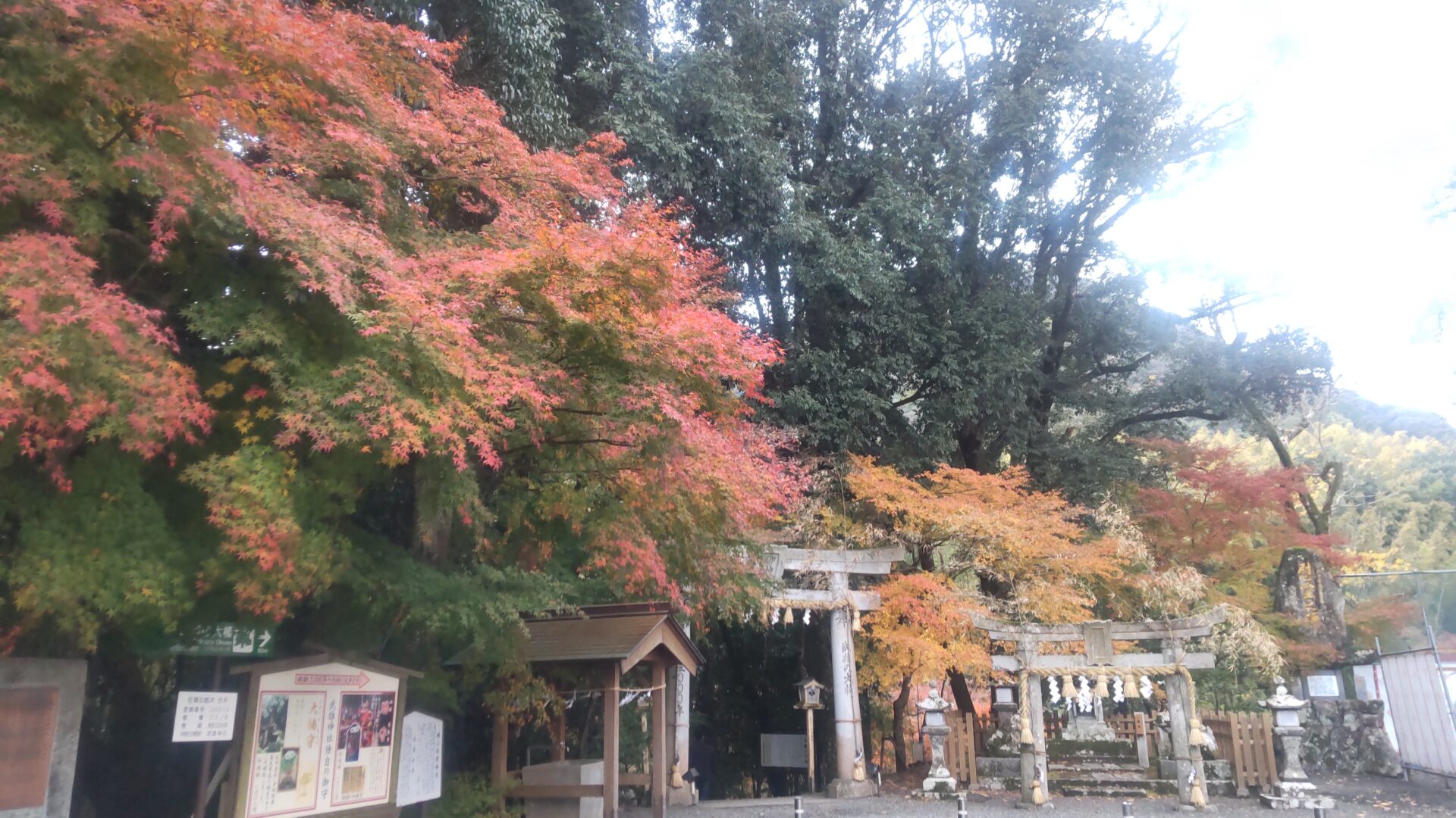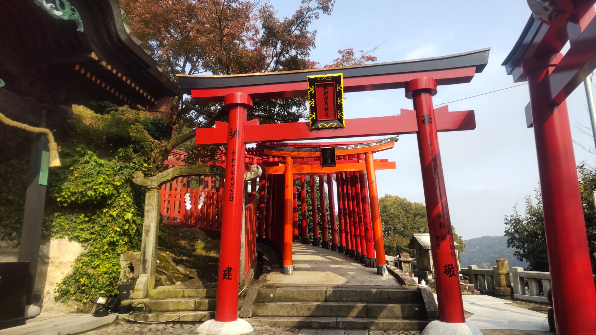 更に上ると、鳥居と紅葉を見下ろせる。