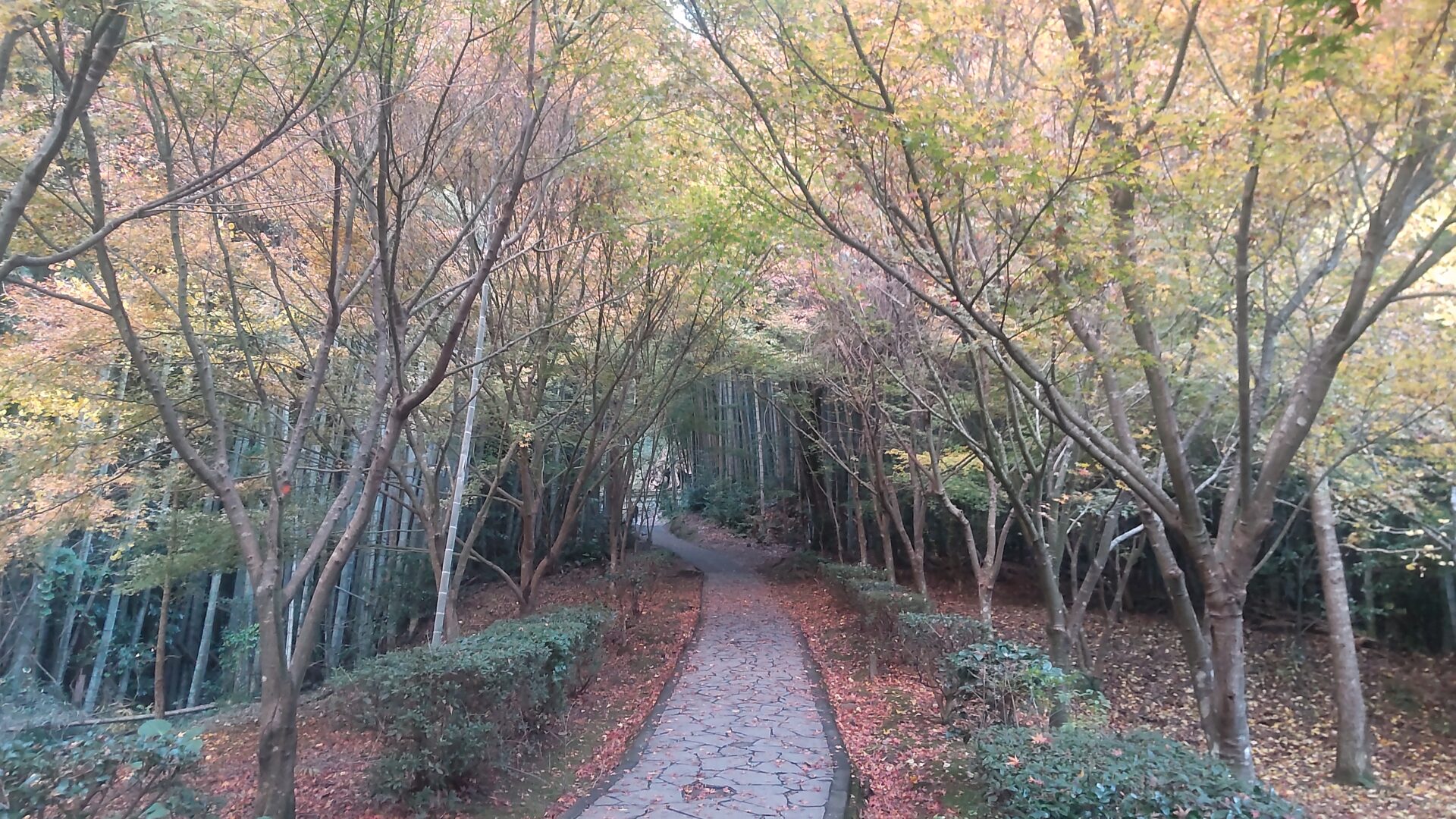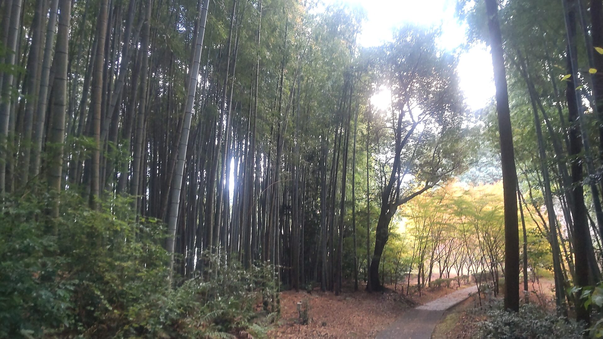 竹と紅葉の幻想的な小径。