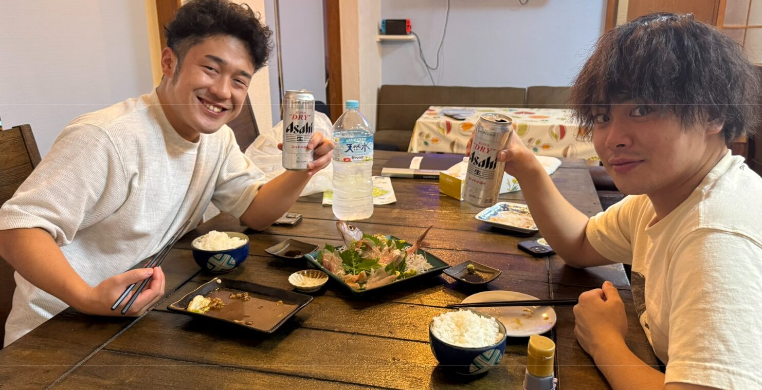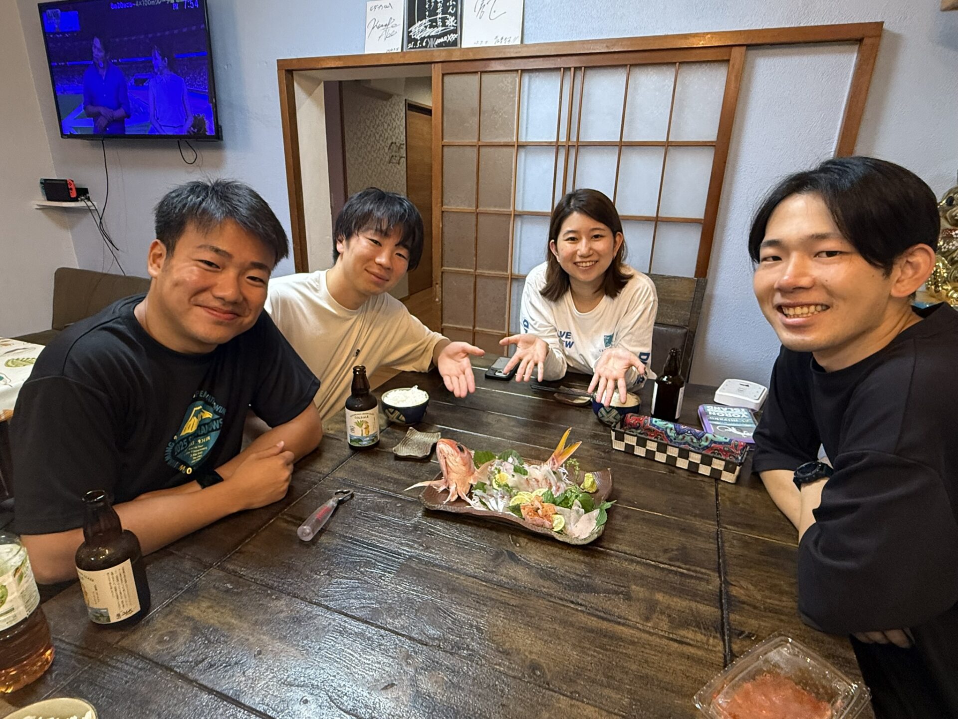 こちらの男子2名はヒメダイ、カンパチ、アカハタの盛り合わせ。ビールやご飯と一緒に!