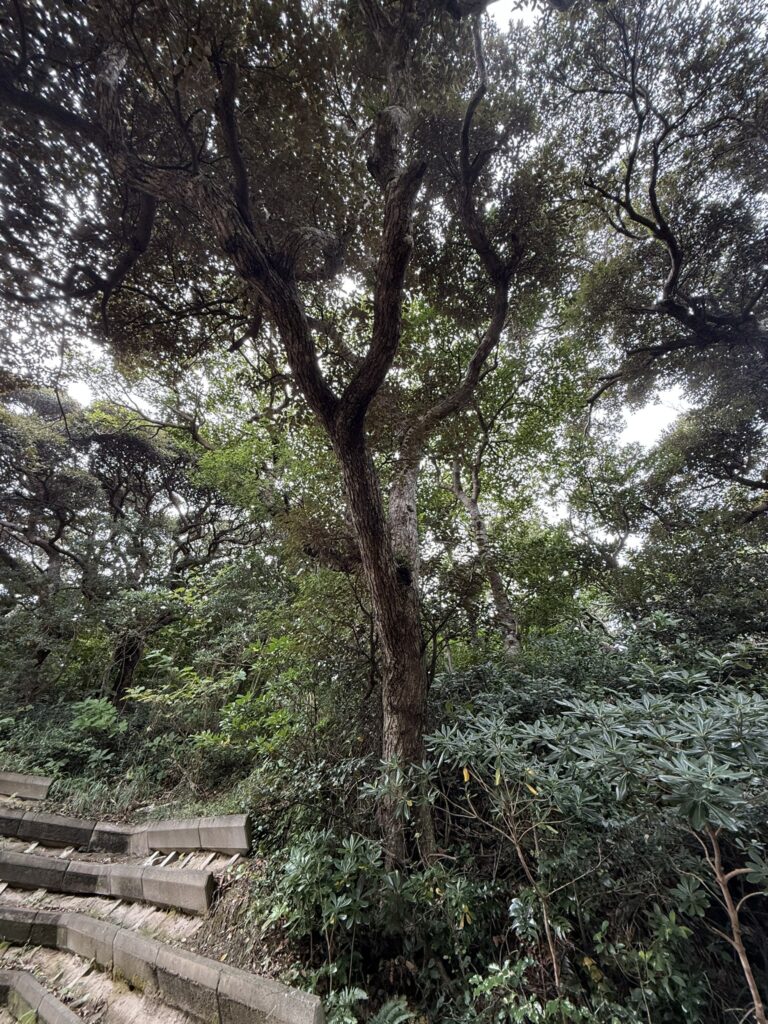 温暖な海洋気候の式根島の原生林を構成しているのは、シイノキ(スダジイ)やタブノキなどの常緑広葉樹(照葉樹)です。