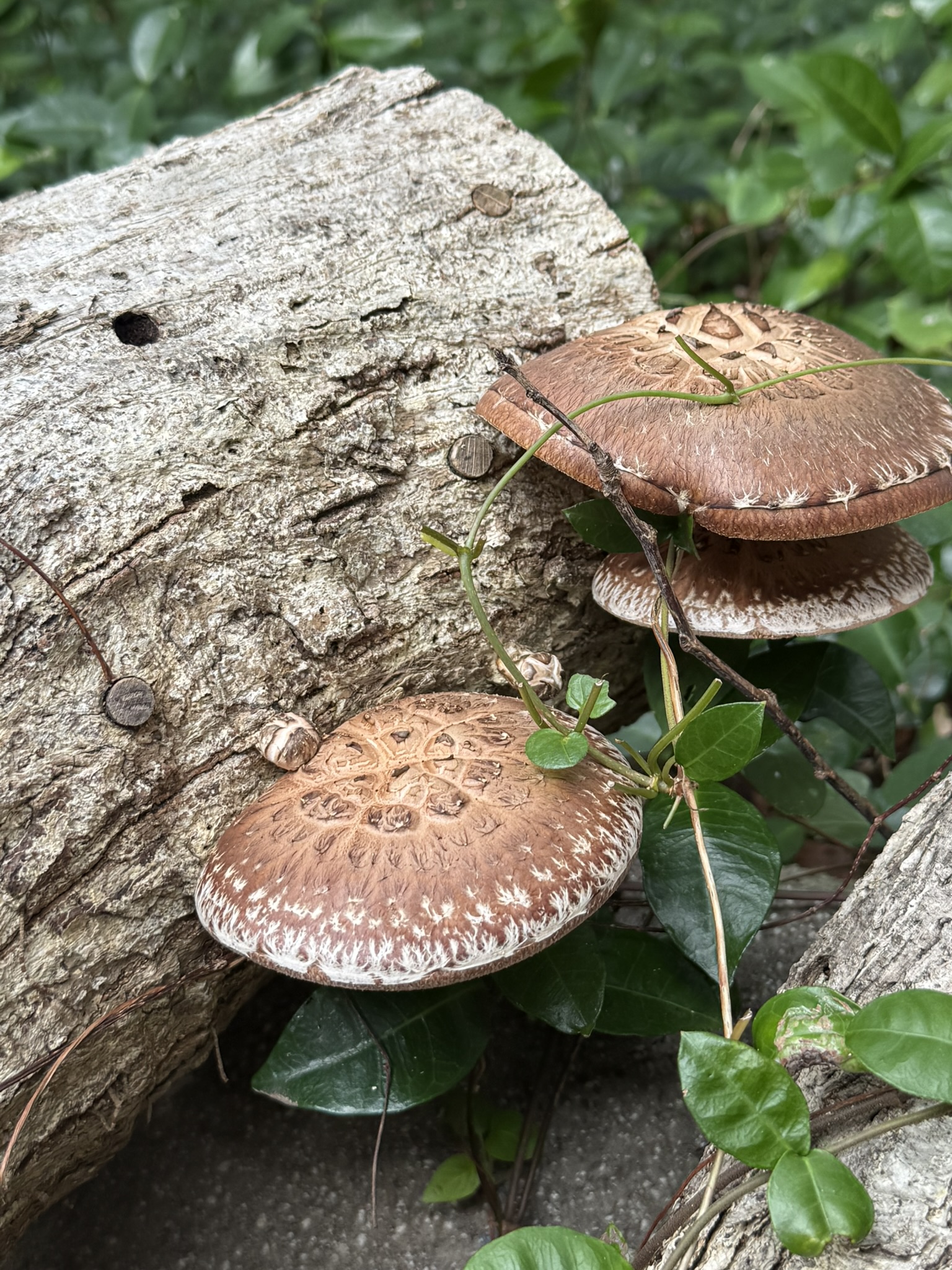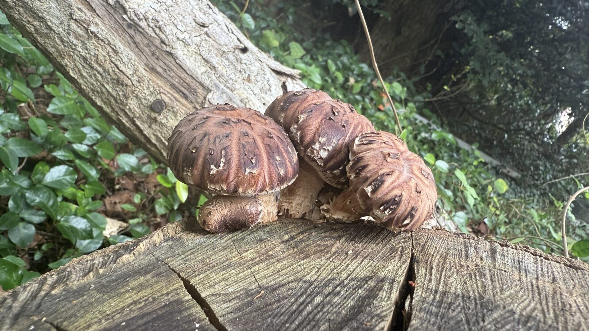基本は完全天然物ではなく、島の椎の木からほだ木を作り、菌種をコマ打ちをして育てたものを食べています。