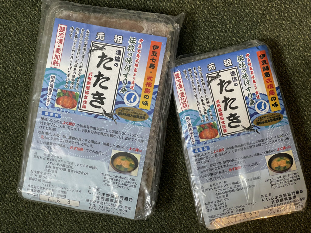 昔は、それぞれの家庭の味がありましたが、材料調達や作る手間が大変で、最近は式根島漁協婦人部が製造する「漁協のたたき」を買って食べることが増えました。