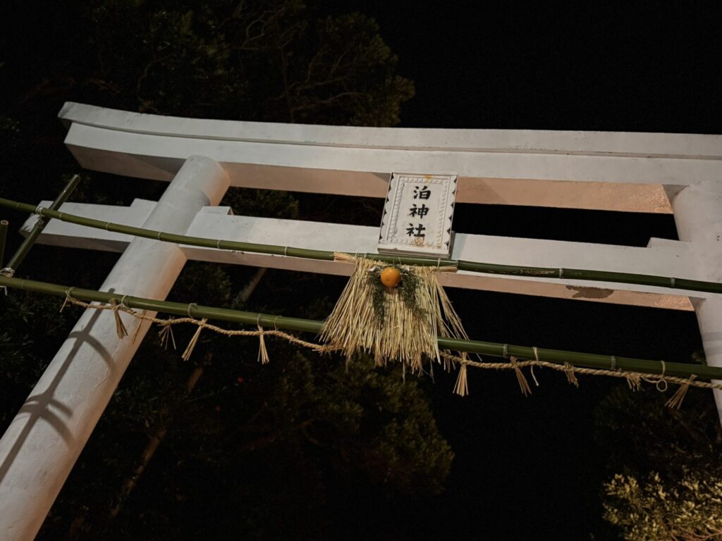 こちらは、最も重要な式根島唯一の神社「泊神社」の表鳥居につける正月飾りです。