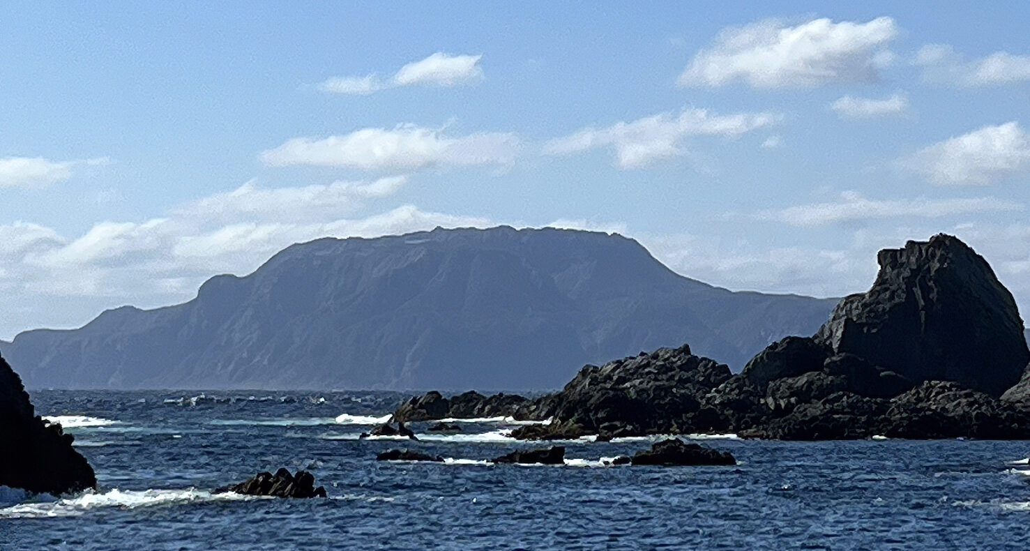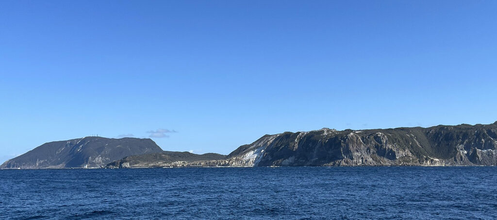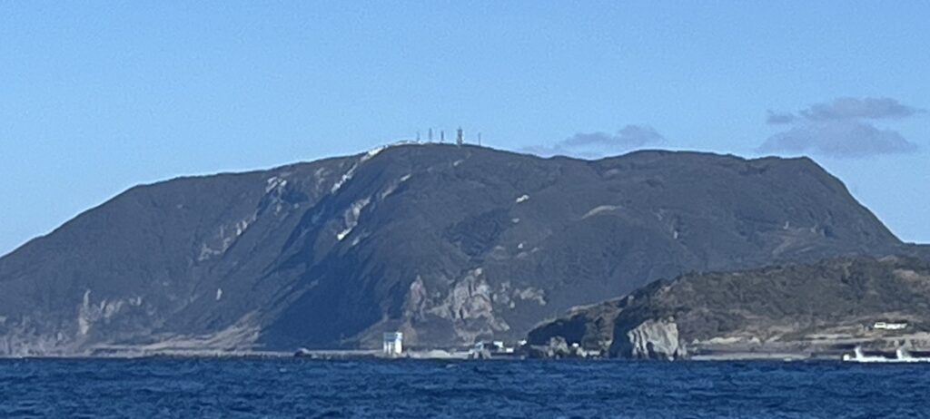 霞んでいますが、なんとなく雄山が白っぽく見えます。ちなみに式根島では、三宅島がはっきり見える翌日は天気が崩れるという観望天気があります。