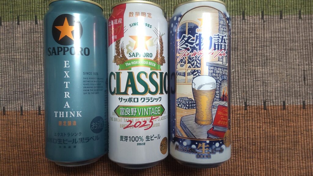 作業後はサッポロビール三種盛。