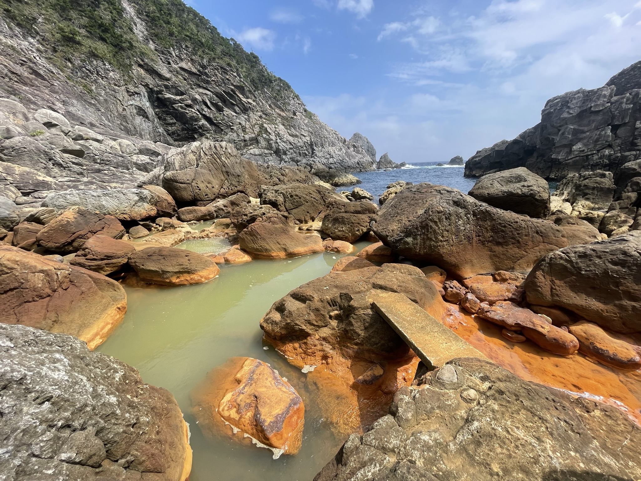 式根島といったら、湯加減は干満まかせの野湯「地鉈温泉」「足付温泉」など、海岸線に湧くワイルド・豪快な温泉群です。水着着用で24時間無料で入れる自由さがウリ。さらに便利で安全な「松ヶ下雅湯」、身体もしっかり洗える、内湯の共同浴場「憩の家」など、毎日温泉三昧できます。