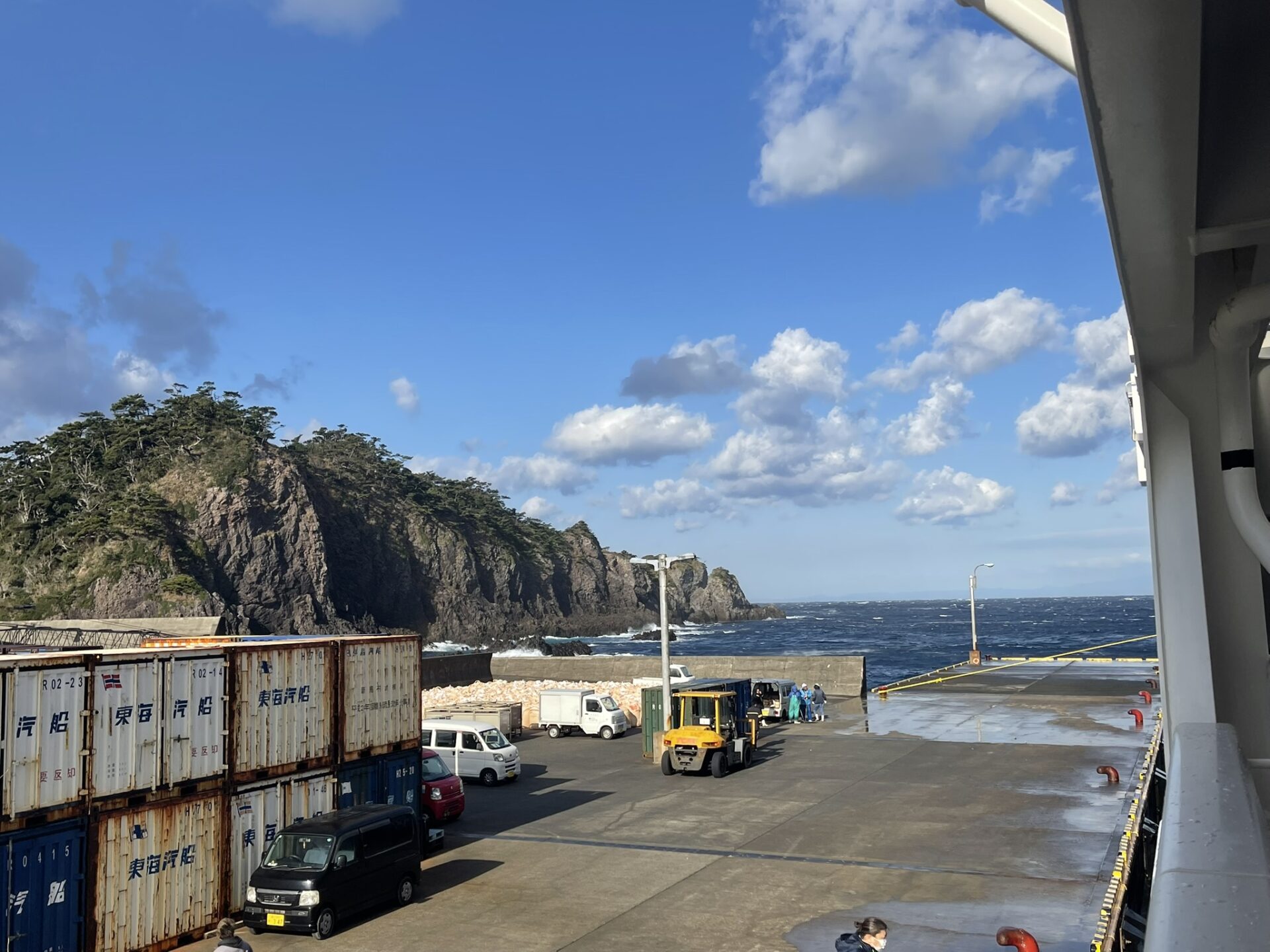 なんとか着岸できた野伏港も、時折波が上がる荒れ模様ながら、空は晴天です。