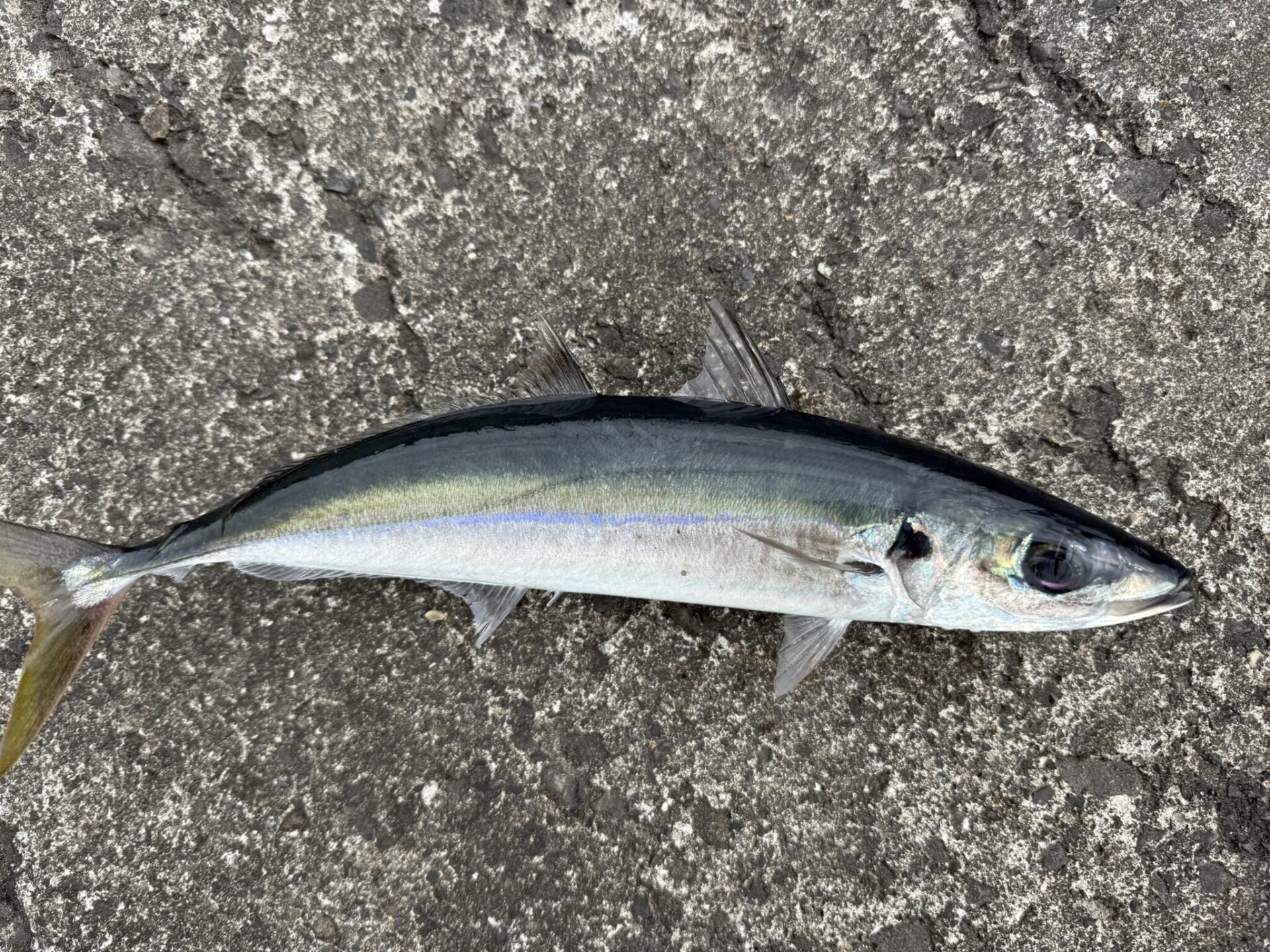 それでも釣りをしに来たわけですから、ときおり桟橋を上がってくる波をよけながら、かぶりながら野伏港で果敢に竿を振ります。足元に2本置き竿、さらにカゴ釣でムロアジを釣ろうという強欲ぶりに、自分でも呆れます。