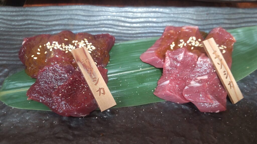 夜は鹿と牛。